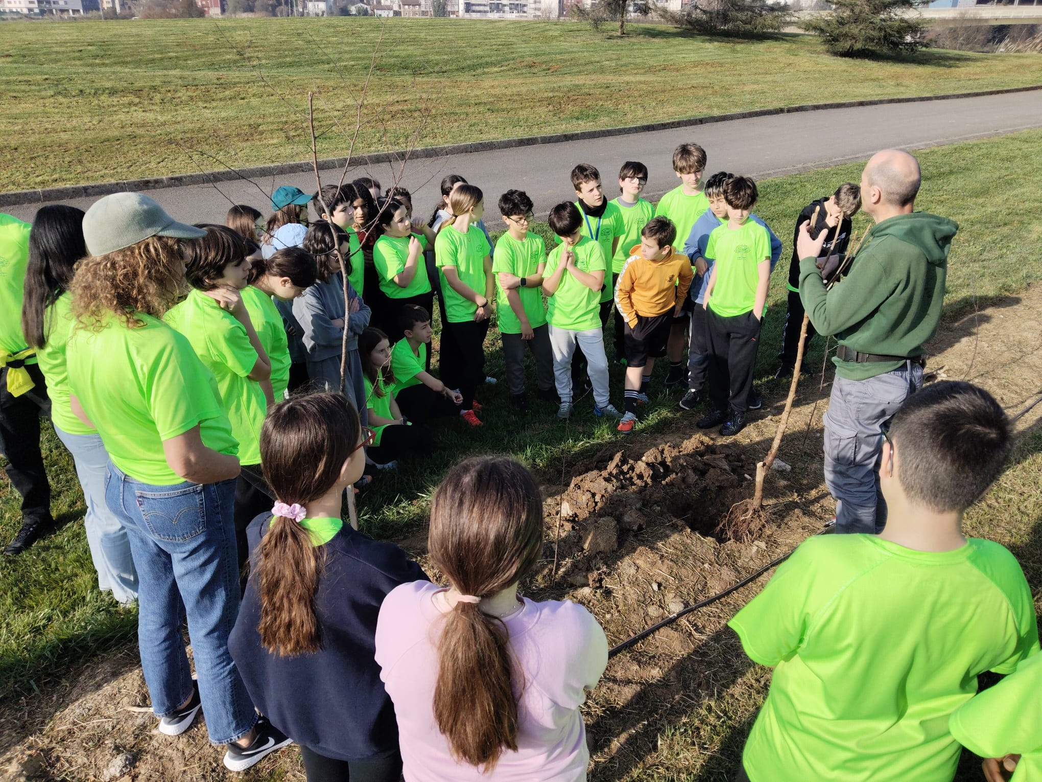 Escolares de Camargo participan en una jornada de plantación de árboles en el Bosque Comestible JC Navalips